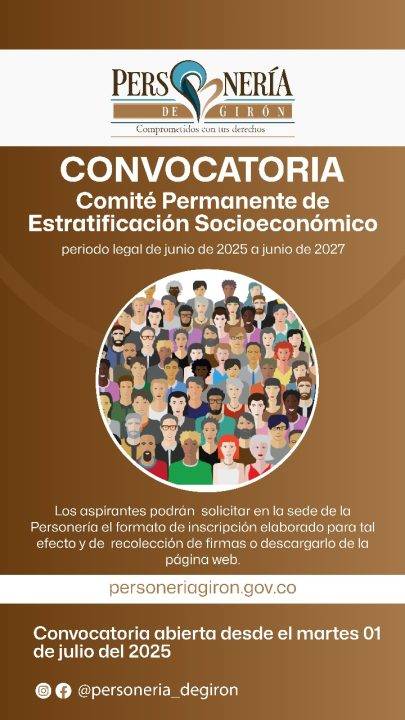 CONVOCATORIA ABIERTA PROMOVIDA POR LA PERSONERIA DE GIRON – ELECCION REPRESENTANTE DE USUARIOS ANTE EL COMITE PERMANENTE DE ESTRATIFICACION SOCIECONOMICO PERIODO 2025 – 2027